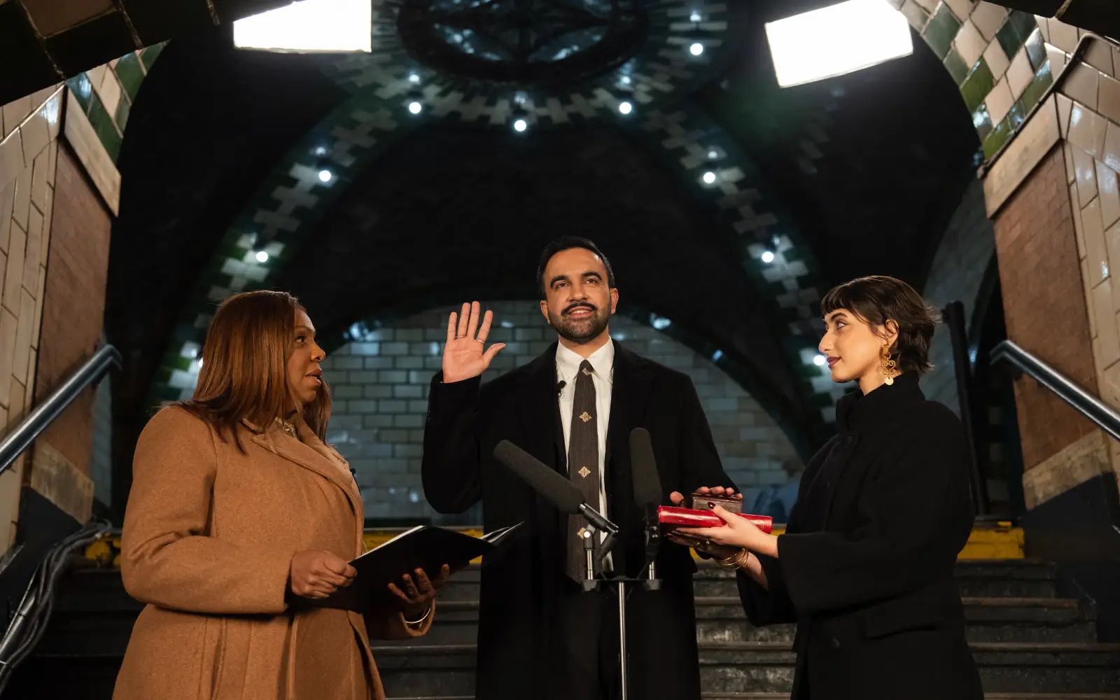 Upacara angkat sumpah itu berlangsung di stesen kereta api bawah tanah Old City Hall yang tidak lagi beroperasi.