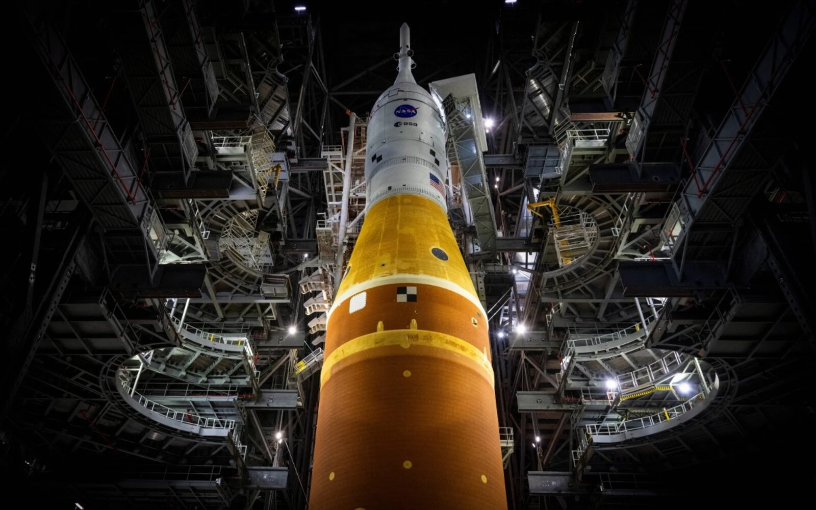 Nasa rolls out moon rocket to launch pad ahead of Artemis 2 mission