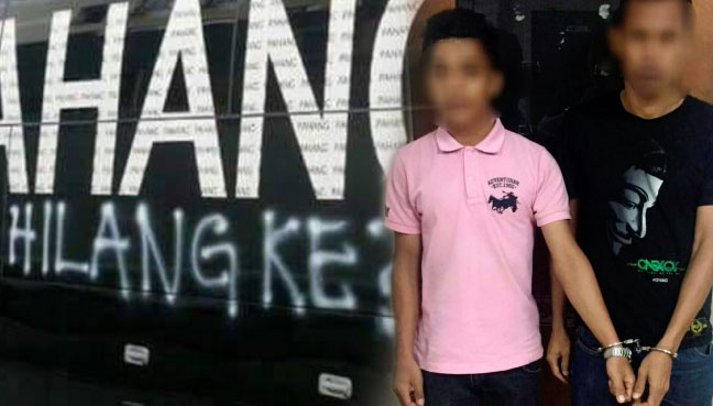 Dua ditahan gara-gara conteng bas
