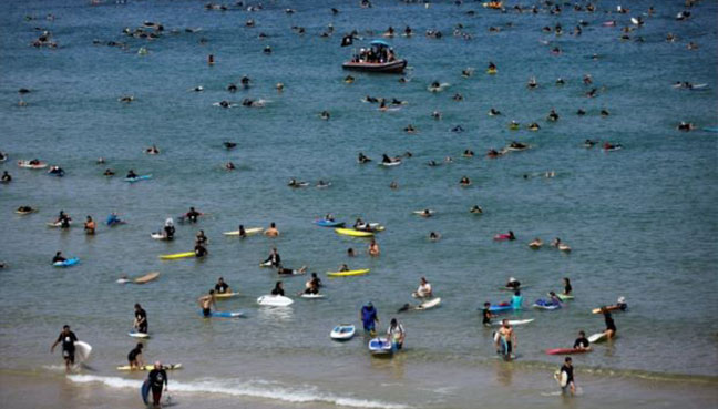 Hundreds of Israelis surf against gas rig in Guinness record bid