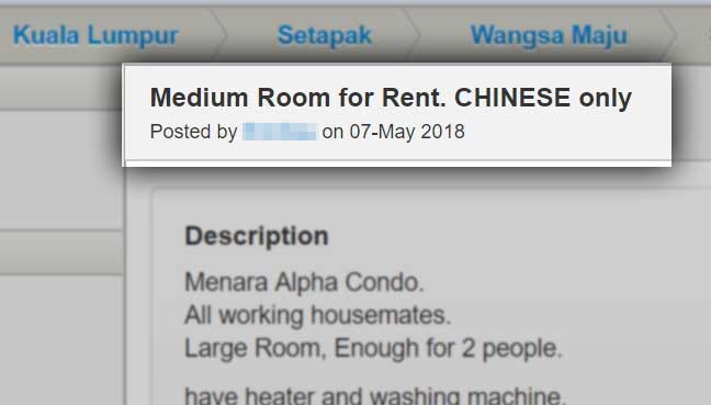 Adakah rasis untuk nyatakan kaum dalam iklan sewa?