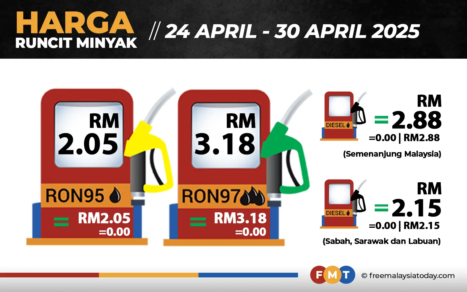 Harga petrol, diesel tak berubah hingga 30 April