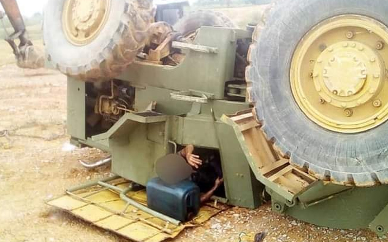 Buruh maut terperangkap di bawah traktor terbalik