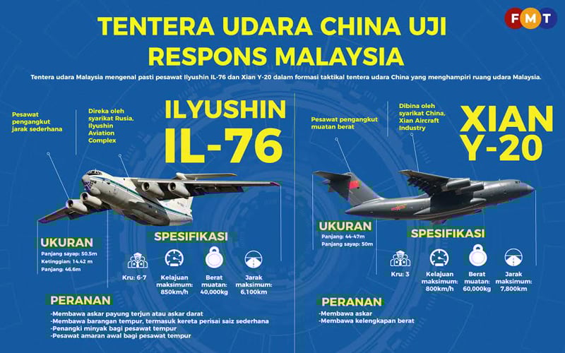 IL-76 dan Y-20: Pesawat pengangkut tentera China uji respons Malaysia